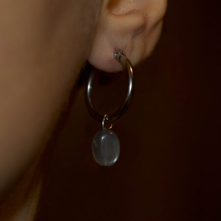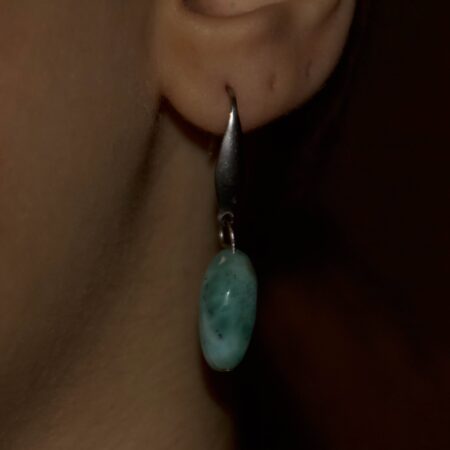 Un orecchino essenziale ed elegante, impreziosito da una goccia ovale di cianite dal blu intenso e naturale. Un accessorio leggero, raffinato e luminoso.