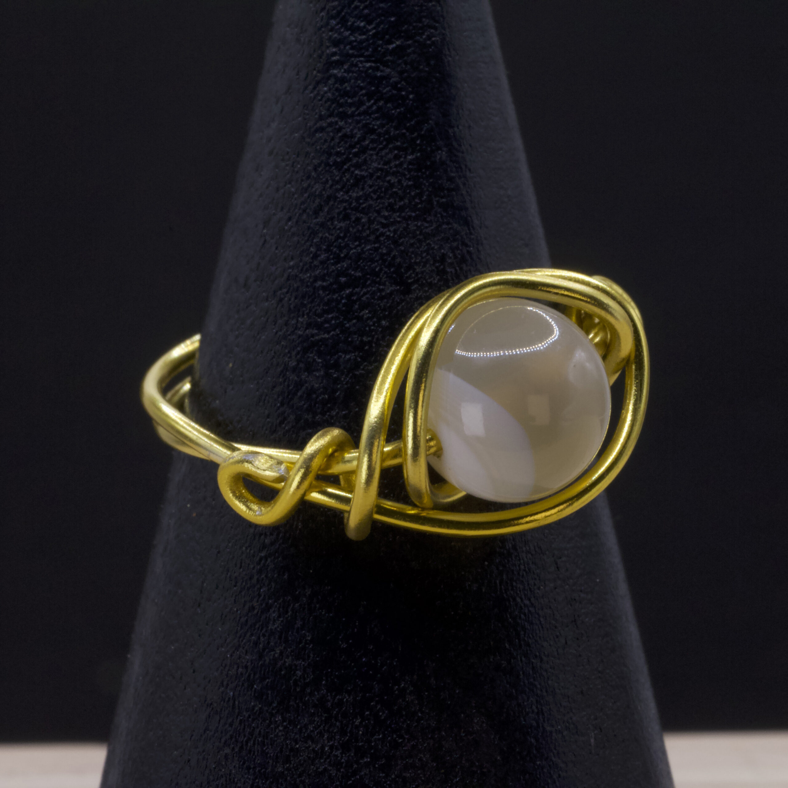 Anello in agata Botswana | filo dorato intrecciato