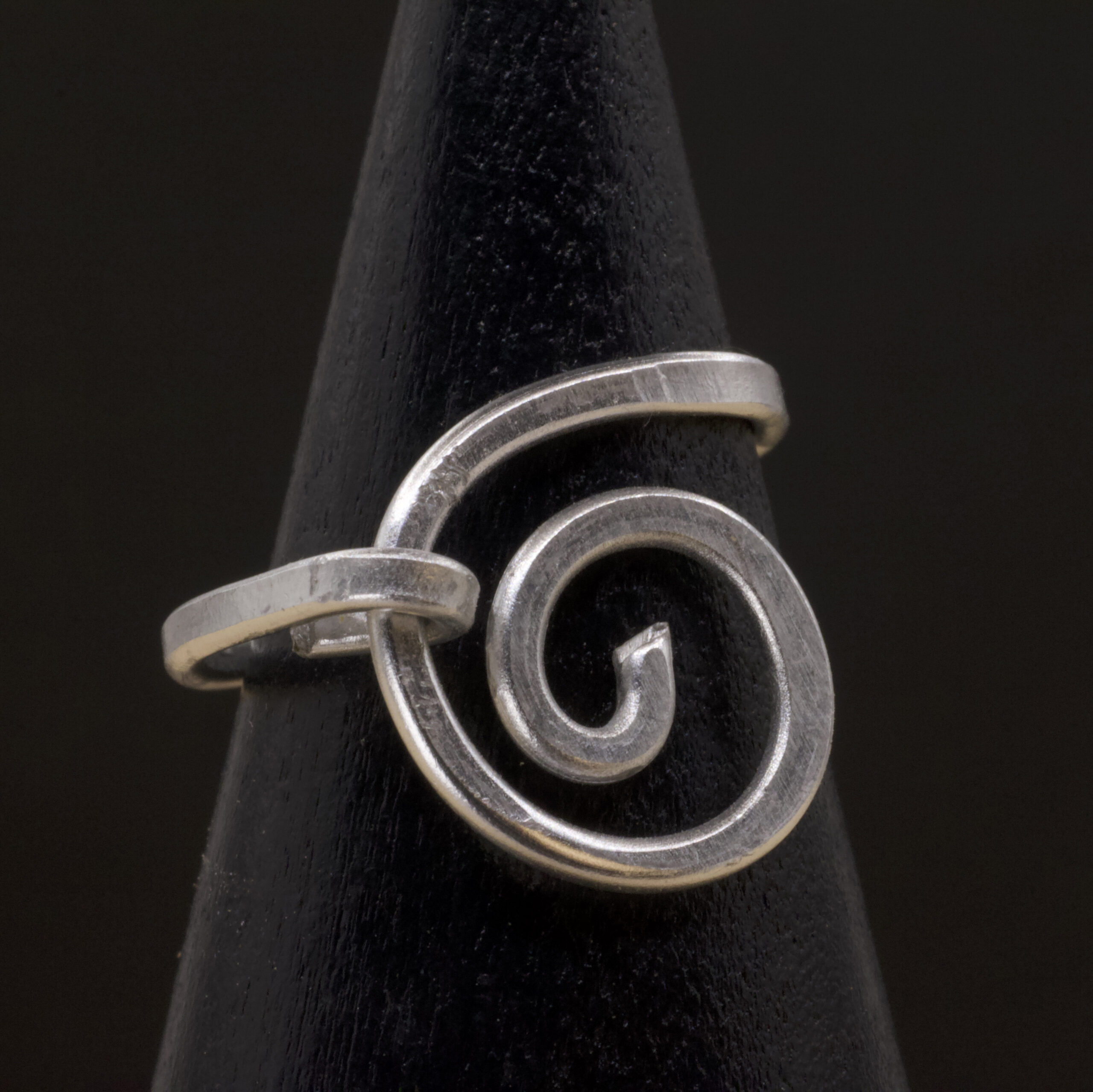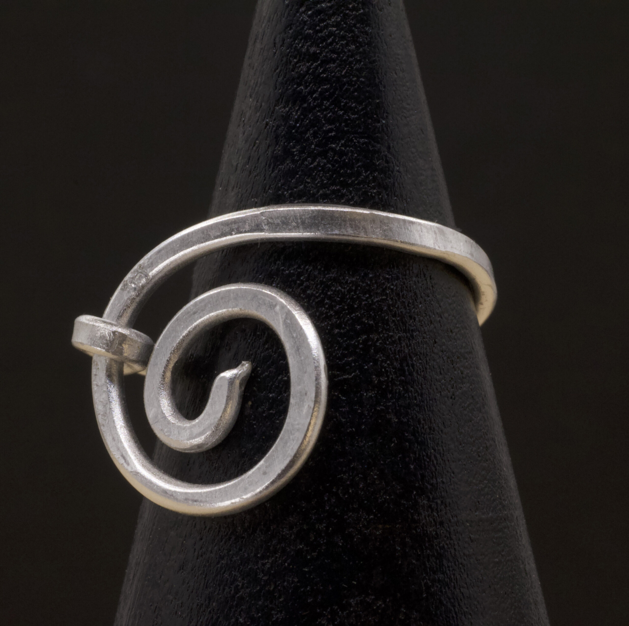 Un anello sottile in alluminio anallergico, modellato in una spirale che si chiude in una piccola punta centrale. Un dettaglio minimale ma deciso, perfetto per chi ama le linee pulite con un richiamo leggero al mondo organico e naturale.