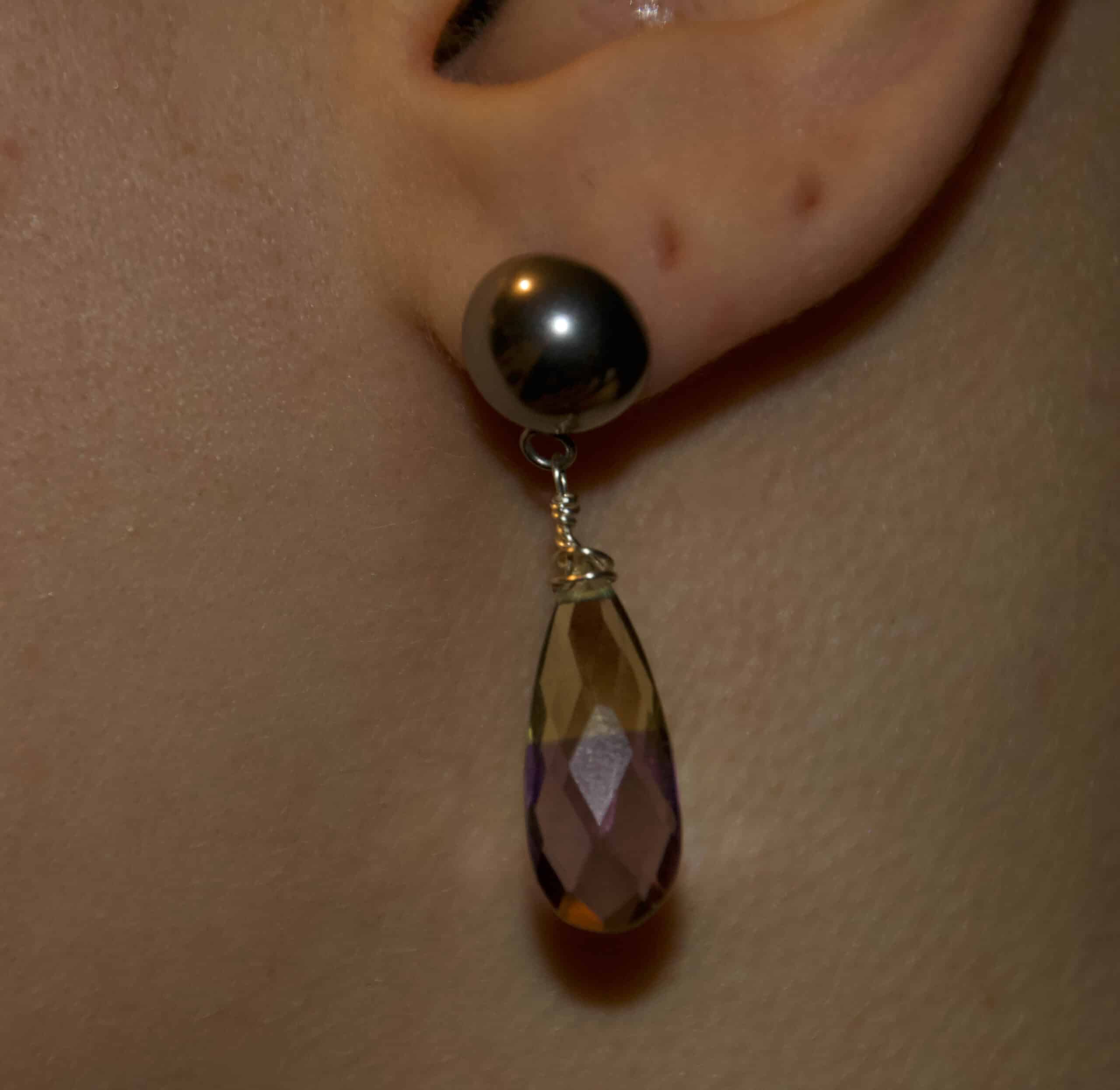 Pietre: ametista e quarzo citrino naturali uniti in un’unica goccia (bicolore)