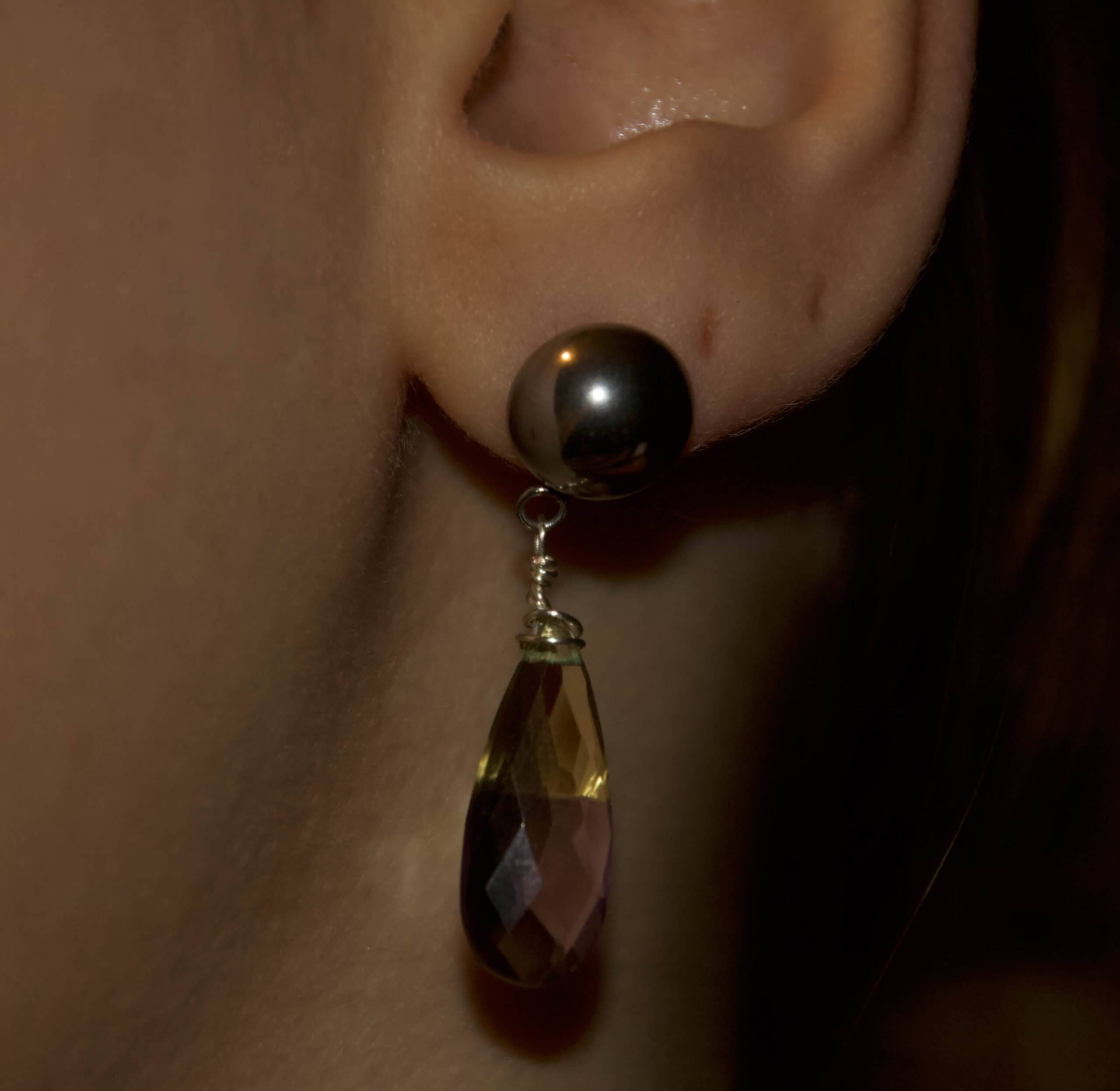 Una goccia sfaccettata che unisce ametista e quarzo citrino in un’unica gradazione morbida, luminosa e raffinata.